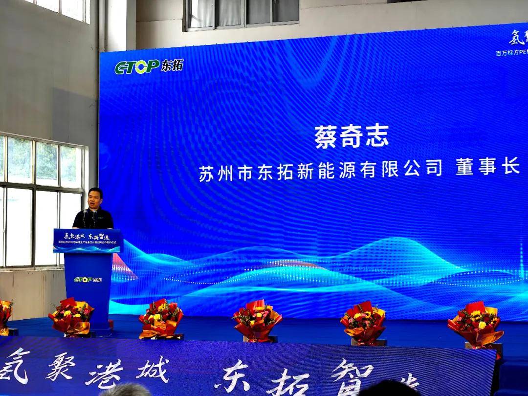 9月20日,东拓新能源在张家港举行了“百万标方特高压PEM电解槽生产设备交付暨战略合作签约仪式。在这次活动上,上百位来自氢能产业链的伙伴见证了东拓百万标方级特高压PEM电解槽生产设备成功下线交付。