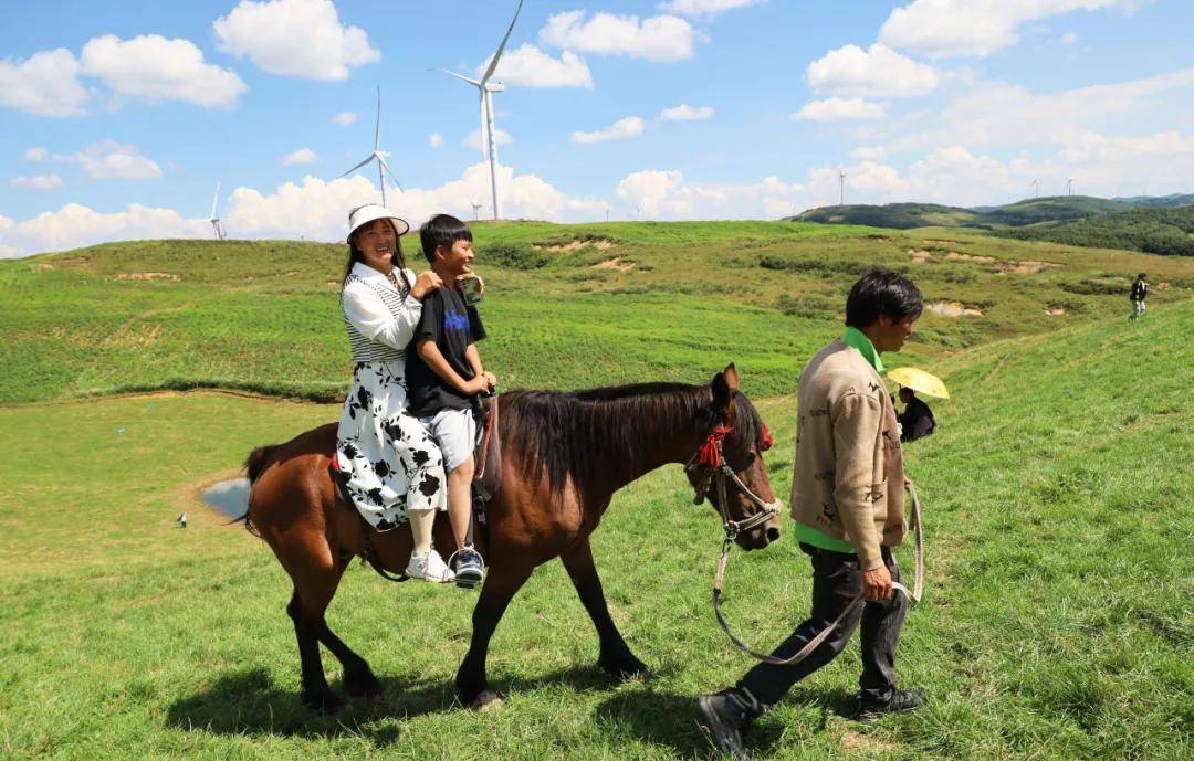 今年以来,“阳光威宁・浪漫草海”文旅品牌持续升温,吸引了各地游客。云南镇雄的成甜一家自驾来到百草坪,体验完骑马后,又换上苗族盛装拍照,她乐呵呵地说:“之前在抖音上刷到百草坪的大风车就动了心,来了果然没失望。”