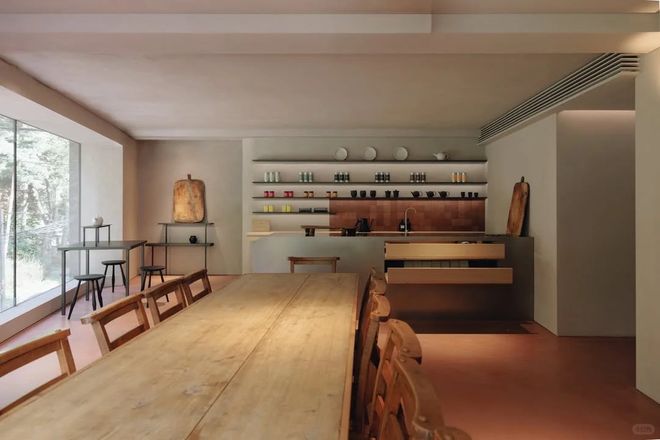 门店延续品牌标志性的极简主义美学,以木材、金属、混凝土与玻璃为核心材质,通过材质的自然肌理与克制色调营造静谧氛围。的混凝土墙面搭配柚木陈列架,金属线条勾勒出利落轮廓,玻璃隔断引入自然光线,整体空间保留伦敦总店的质朴基调,使整个空间在极简布局中透出生活诗意,既保持品牌视觉辨识度,又通过天然材质融合,营造出契合亚洲审美的静谧内敛氛围。