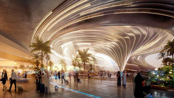该机场将拥有最前沿的科技,旨在成为世界上最智能化的机场,规划、设计与配置处处展现前瞻性:人工智能管理客流、生物识别值机、空中交通、行李物流、调度和预测性维护等。